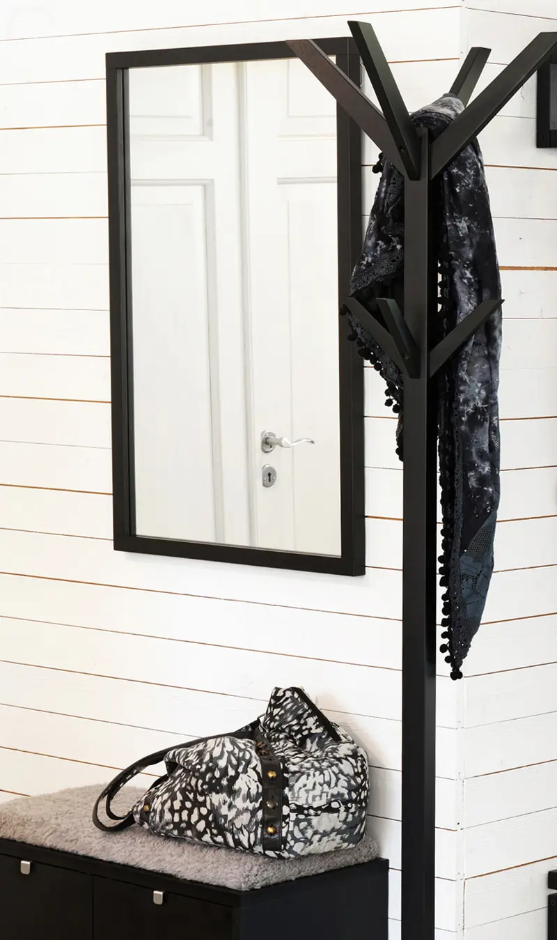 Confetti Spiegel aus massiver, weiß pigmentierter Eiche. Elegantes und zeitloses Design. Kann sowohl senkrecht als auch waagerecht aufgehängt werden. Der Spiegel ist Teil der Confetti-Dielenserie.