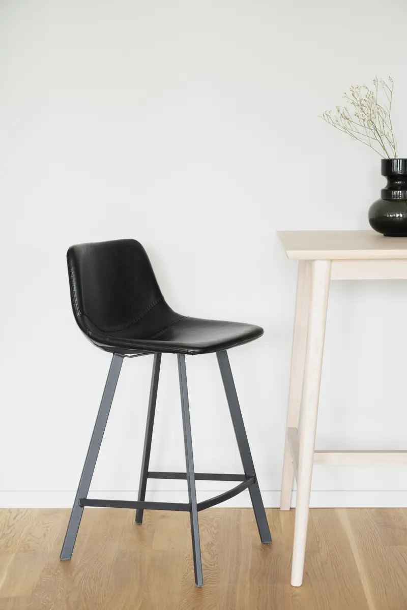 Barhocker Auburn mit schwarzer Kunstlederpolsterung. Schwarze Metallbeine. Stilvoller und bequemer Barhocker, der perfekt an die moderne Kücheninsel passt. Der Stuhl ist Teil der Serie Auburn. Wird nur im 2er-Pack verkauft.