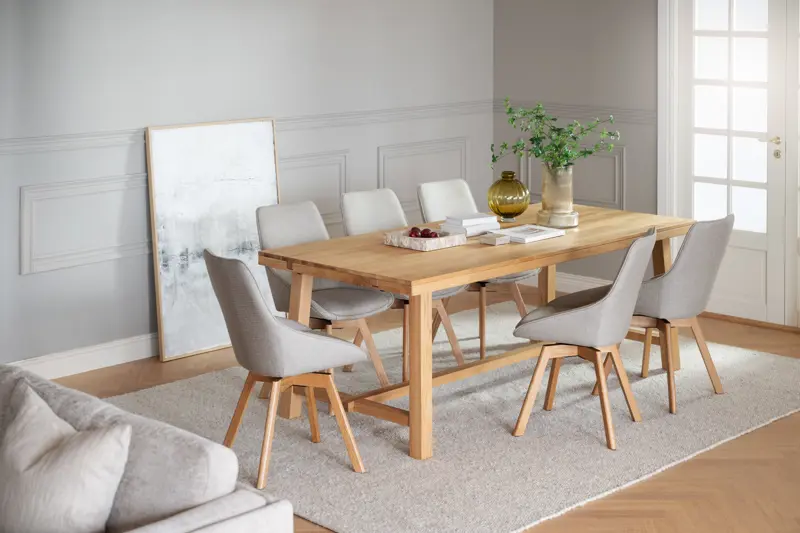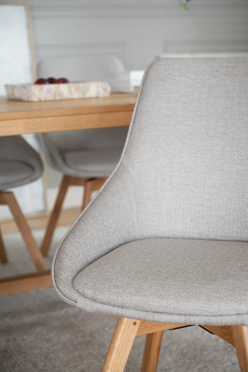 Der beliebte Stuhl Alison mit Holzfuß und Drehfunktion. Hier in einem strapazierfähigen beigen Stoff und mit Beinen aus lackierter Eiche abgebildet. Alison hat einen gepolsterten Sitz mit hohem Sitzkomfort in einem geschwungenen Design und Beine mit einer 360-Grad-Drehfunktion. Der Stuhl passt perfekt um den Esstisch, aber auch als unregelmäßiger Stuhl für den Schreibtisch. Bitte beachten Sie, dass die Farbe des Stoffes in manchen Lichtern als hellgrau erscheint. Alison ist FSC®-zertifiziert und auch in anderen erdigen Farben erhältlich. Wird nur im 2er-Pack verkauft.