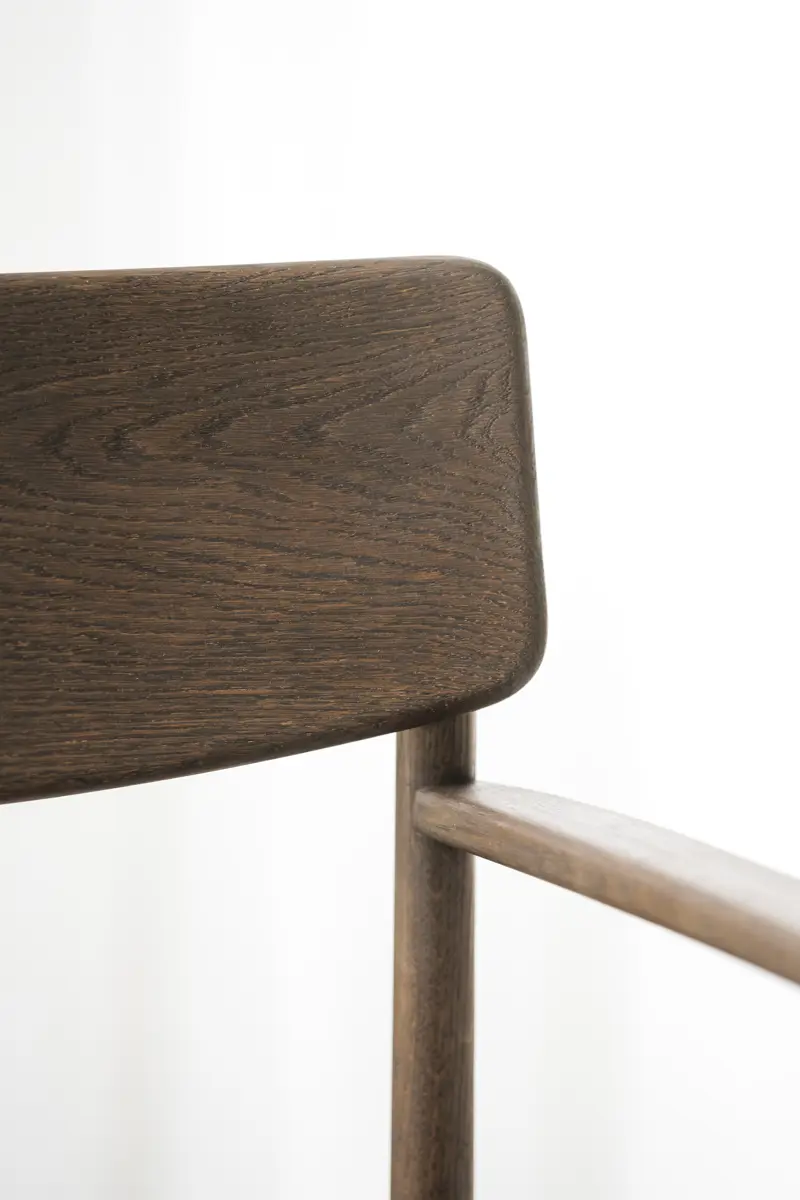 Maidstone Armlehnenstuhl aus massiver brauner Eiche. Ein einzigartiges Stück Handwerkskunst mit Details wie Rahmen, geschwungener Sitzfläche und durchdachter Linienführung. Ein Stuhl, der als Loungestuhl im Wohnzimmer ebenso gut aussieht wie als Stuhl am Esstisch. Zeitloses Design, das nie aus der Mode kommt. Wird zusammengebaut aus FSC®-zertifiziertem Holz geliefert. Auch in naturfarbener Eiche erhältlich.