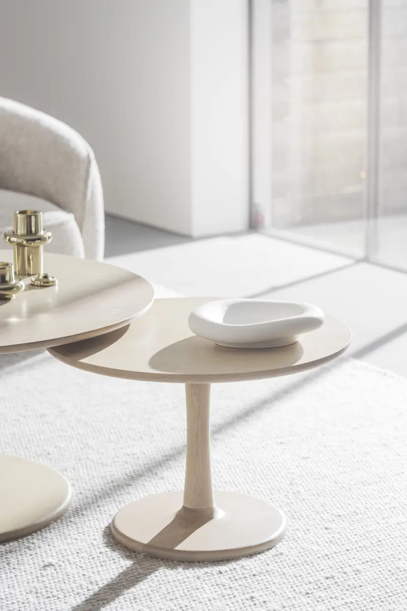 Der Hobart Couchtisch Ø60 ist ein luftiger und stilvoller Säulentisch im skandinavischen Design. Die dünne Tischplatte mit einem schönen Muster aus Eiche trifft auf den gedrechselten Fuß aus demselben Holz. Ein Couchtisch mit organischen Formen und weichen Linien. Kombinieren Sie ihn mit dem Hobart Couchtisch Ø90 cm und stellen Sie sie zusammen als gedeckten Tisch auf. Warum nicht sogar mit drei Tischen eine wunderbare Dynamik schaffen. Der Couchtisch besteht aus 100% FSC®-zertifiziertem Holz und ist eine besonders nachhaltige Wahl. Für diejenigen, die einen wärmeren Ton bevorzugen, ist Hobart auch in naturfarbener Eiche verfügbar.