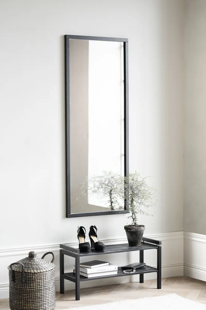 Confetti spegel med ram i svartlackad ek. Stilren och enkel att placera. Går att hänga både vertikalt och horisontellt. Spegeln ingår i hallserien Confetti.