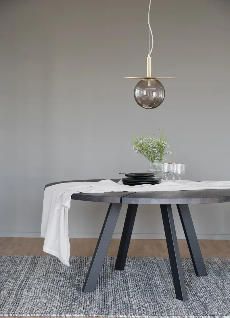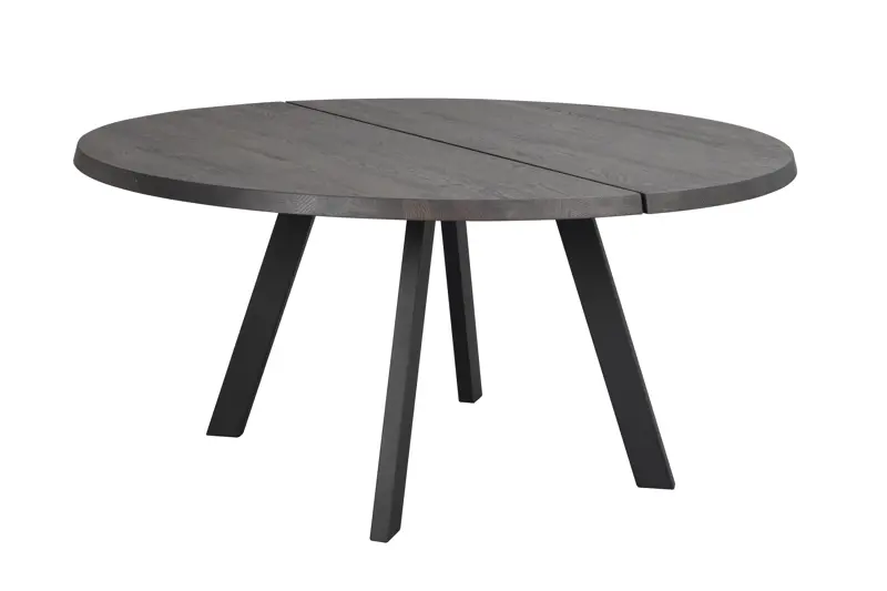 Modern and exclusive dining table with a two-part tabletop in 100% FSC® certified solid oak. The tabletop, which is lacquered in dark brown oak, has a brushed surface and a stylish angled beveled edge. The legs consist of powder-coated black metal and are really stable and durable. A dining table that lasts year after year and is a good and sustainable choice. The table is also available as rectangular in two sizes and includes a stylish sideboard in the series.