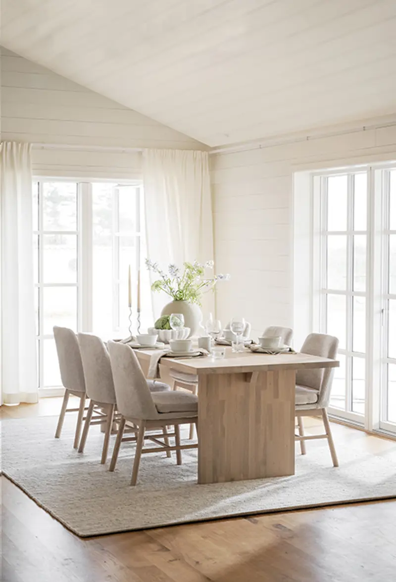 Ljusa trämöbler förknippas med sommar och ger en naturlig, luftig och ljus känsla. Vill du skapa kontraster och låta matplatsen sticka ut och stå i centrum är det trevligt att bryta av med ett mörkbrunt matbord till den ljusa miljön som ofta finns i sommarboenden.