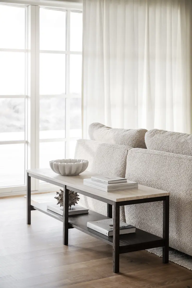 Avlastningsbordet Orwel H45 cm har en exklusiv stenskiva av sandfärgad travertin från Italien som vilar på en stomme av brunlackad FSC-certifierad ek. Travertin är en kalkstenstyp med fina skiftningar som ger avlastningsbordet en naturlig skönhet och med tiden unik patina. Den låga höjden passar perfekt framför ett fönster eller varför inte som tv-bänk? Orwel andas skandinavisk design med det enkla och eleganta formspråket där hållbara material förenas i en vacker helhet. I kollektionen Orwell ingår även avlastningsbord H75 cm samt ett soffbord.