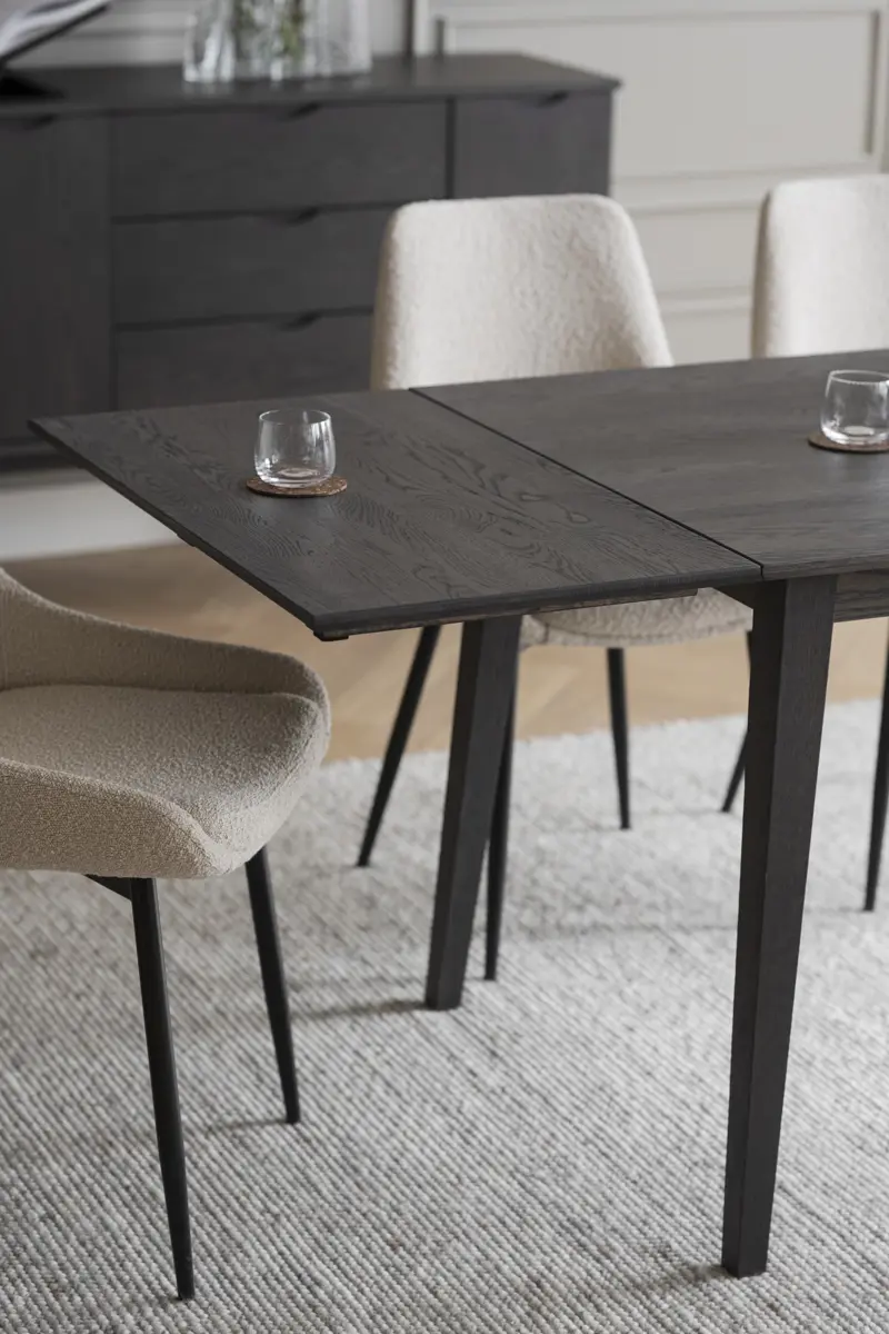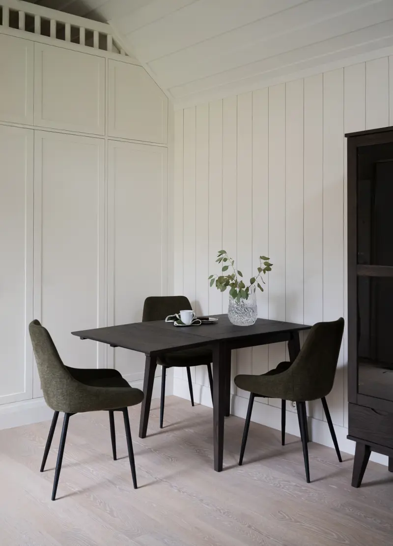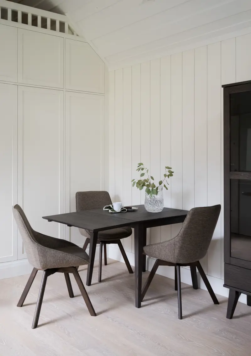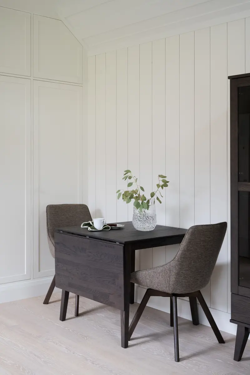 Filippa klaffbord i brunlackad massiv ek är ett mindre klaffbord i smidigt format med stilren och enkel design. Perfekt för det mindre boendet eller för dig som vill inreda smart och flexibelt. Bordet är 80 cm långt och har en fällbar klaff som ger plats för fler – maxlängd med uppfälld klaff är 125 cm. Matbordet består av 100% FSC-certifierat trä och är ett bra och hållbart val. Klaffbordet ingår i den tidlösa och populära kollektionen Filippa. Finns i flera färger och storlekar..