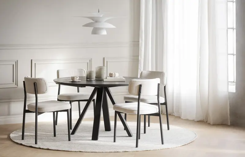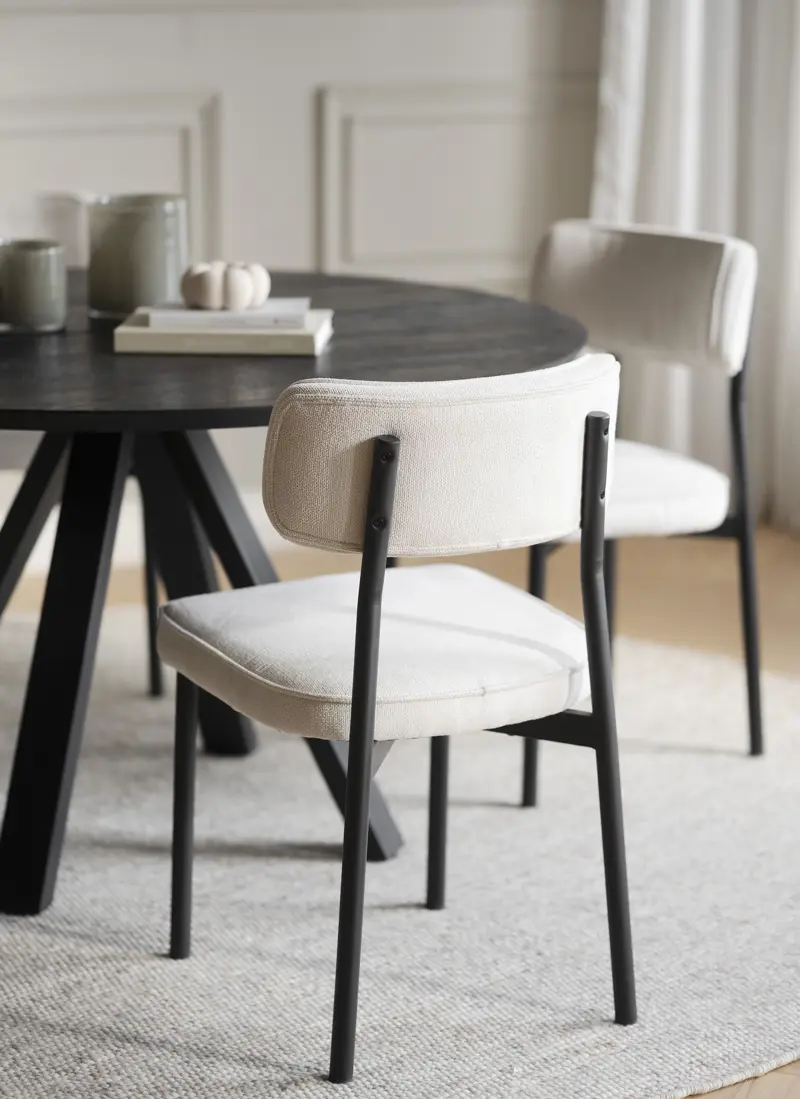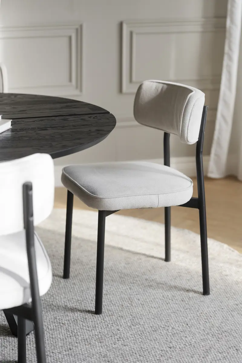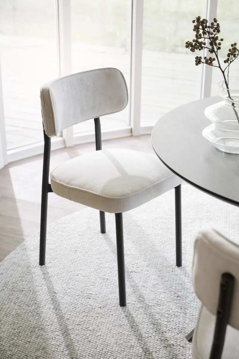 Stolen Paisley är FSC-certifierad och har ett tåligt ljusbeige tyg som är tillverkat av återvunna PET-flaskor (RPET). Det innebär att PET-flaskorna inte hamnat i havet eller förorenat stränder utan i stället bearbetats till ett högkvalitativt mjukt tyg – perfekt för möbler. Rundningen i ryggstödet skapar hög sittkomfort och en avslappnad känsla. De trendiga runda benen i svartlackad metall ger stabilitet och ett unikt uttryck som passar till de flesta matbord. Att välja Paisley stol är ett hållbart val. Finns även i gråbrun. Säljs endast i 2-pack.